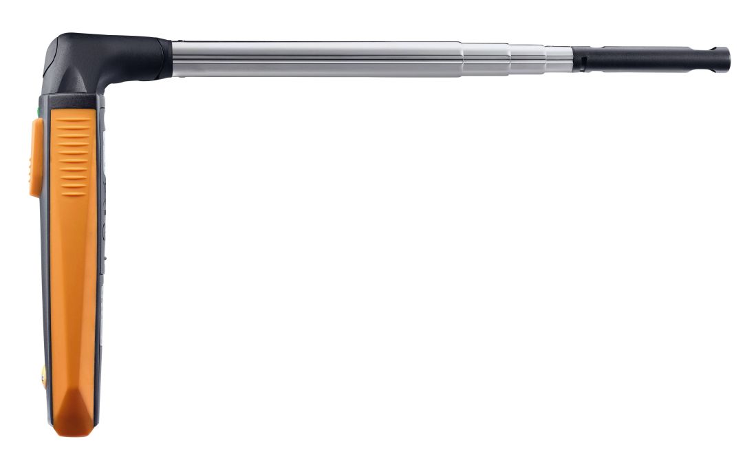 Testo 405i thermal anemometer with smartphone operation, including extendible (400 mm) telescope, batteries and calibration protocol.